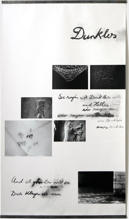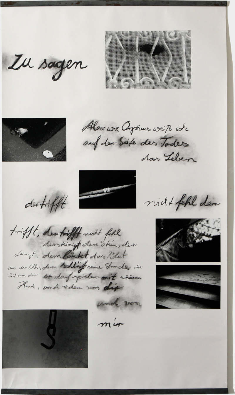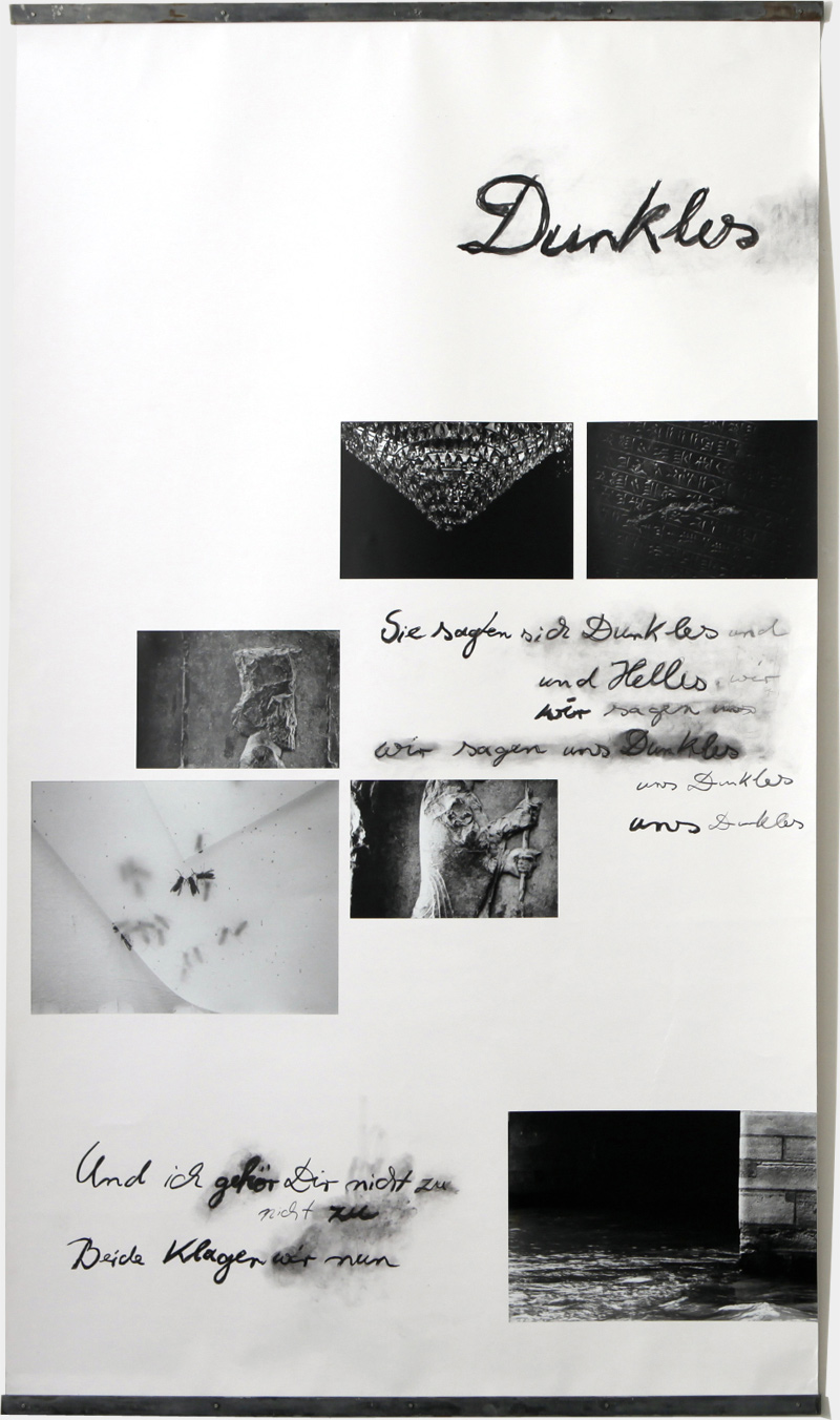 Textfragmente von Ingeborg Bachmann und Paul Celan Silbergelatineprints und Kohle auf Papier, Metallschienen Je 190 x 110 cm